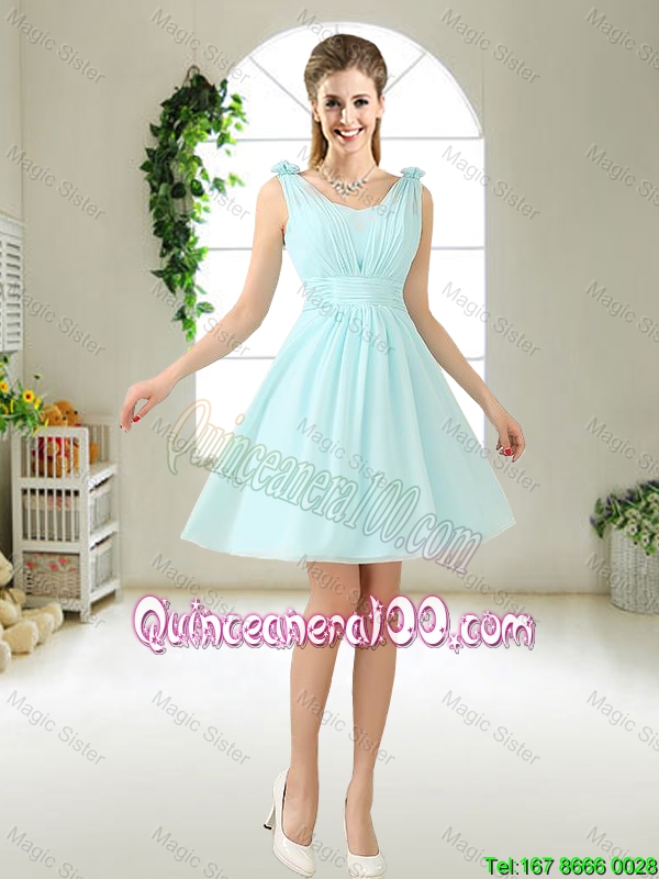 Neckline : StraplessShown Color : Light BlueSleeve Length : sleevelessHemline : mini lengthBack Detail : ZipperFabric : ChiffonEmbellishment : Ruching,BowknotOccasion : Prom,Party,Wedding PartySeason : Spring,Summer,Fall
