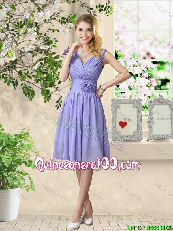 Neckline : SquareShown Color : LavenderSilhouette : A-lineSleeve Length : sleevelessHemline : knee lengthBack Detail : ZipperFabric : ChiffonEmbellishment : Ruching,Hand Made FlowerOccasion : Prom,Party,Wedding PartySeason : Spring,Summer,Fall