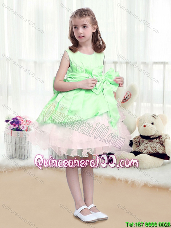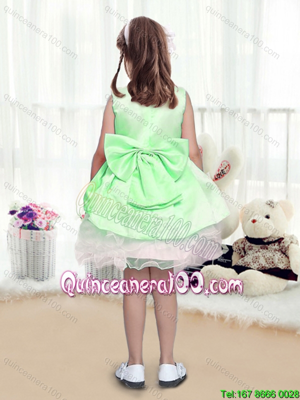 Neckline : ScoopShown Color : Multi-color,Green And WhiteSilhouette : A-lineSleeve Length : sleevelessHemline : mini lengthBack Detail : ZipperFabric : OrganzaEmbellishment : Sashes|ribbons,BowknotOccasion : Quinceanera,Wedding PartySeason : Spring,Summer,Fall,Winter