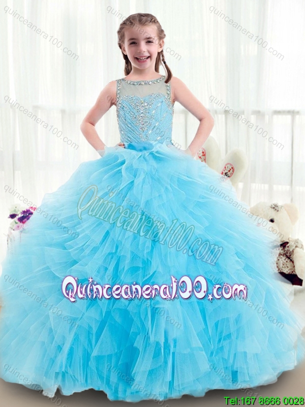 Neckline : BateauShown Color : Aqua BlueSilhouette : Ball GownsSleeve Length : sleevelessHemline : floor lengthBack Detail : ZipperFabric : TulleEmbellishment : Beading,RufflesOccasion : Quinceanera,Wedding PartySeason : Spring,Summer,Fall,Winter