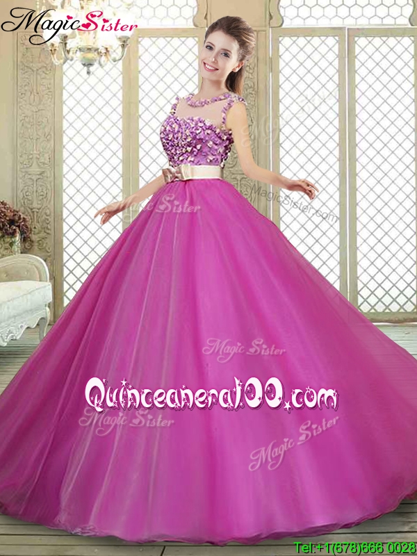 Neckline : ScoopShown Color : FuchsiaSilhouette : Ball GownsSleeve Length : sleevelessHemline : floor lengthBack Detail : Lace upFabric : OrganzaEmbellishment : Appliques,BeltOccasion : Military Ball,Sweet 16,QuinceaneraSeason : Spring,Summer,Fall,Winter