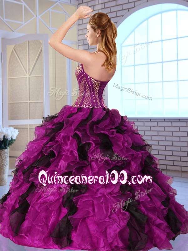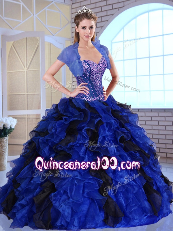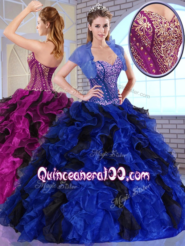 Neckline : SweetheartShown Color : Multi-colorSleeve Length : sleevelessHemline : floor lengthBack Detail : Lace upFabric : OrganzaEmbellishment : Appliques,RufflesOccasion : Military Ball,Sweet 16,Quinceanera