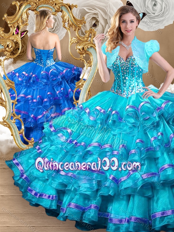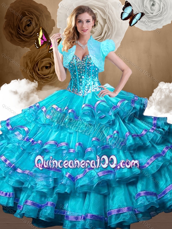 Neckline : SweetheartShown Color : Baby BlueSleeve Length : sleevelessHemline : floor lengthBack Detail : Lace upFabric : OrganzaEmbellishment : Beading,Ruffled LayersOccasion : Military Ball,Sweet 16,QuinceaneraSeason : Spring,Summer,Fall,Winter