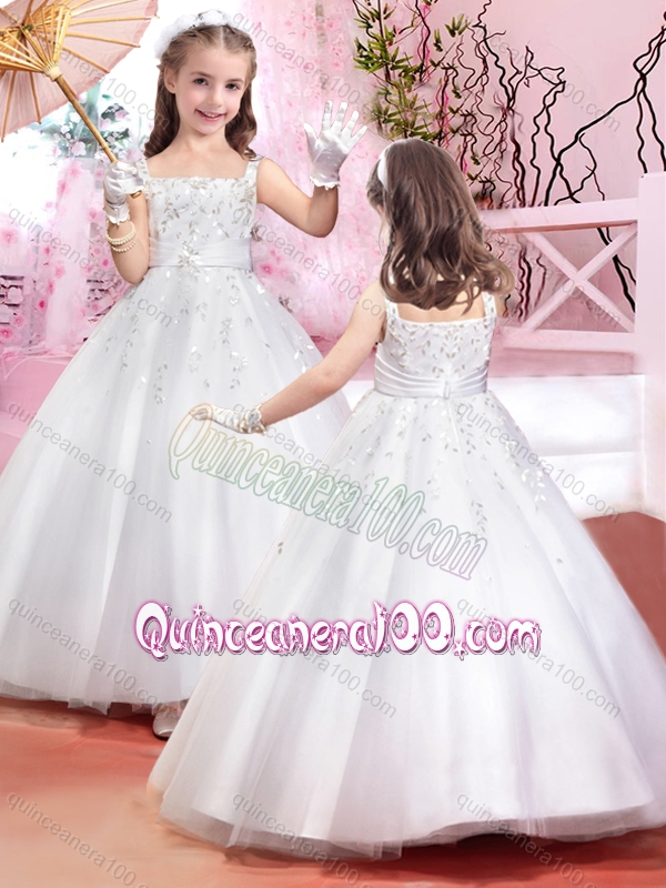 Neckline : SquareShown Color : WhiteSilhouette : Ball GownsSleeve Length : sleevelessHemline : floor lengthBack Detail : ZipperFabric : TulleEmbellishment : Beading,BeltOccasion : Quinceanera,Wedding PartySeason : Spring,Summer,Fall,Winter