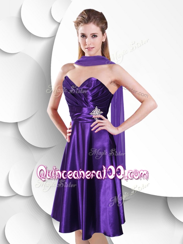 Neckline : SweetheartShown Color : PurpleSilhouette : EmpireSleeve Length : sleevelessHemline : knee lengthBack Detail : ZipperFabric : Elastic Woven SatinEmbellishment : Beading,RuchingOccasion : Prom,PartySeason : Spring,Summer,Fall