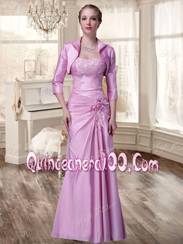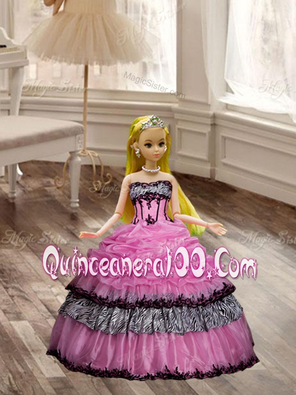 Luxurious Applique Zebra Rose Pink Quinceanera Dress and Strapless White Dama Dresses and Pick Ups Mini Quinceanera Dress and Applique Mother of The Bride Dress