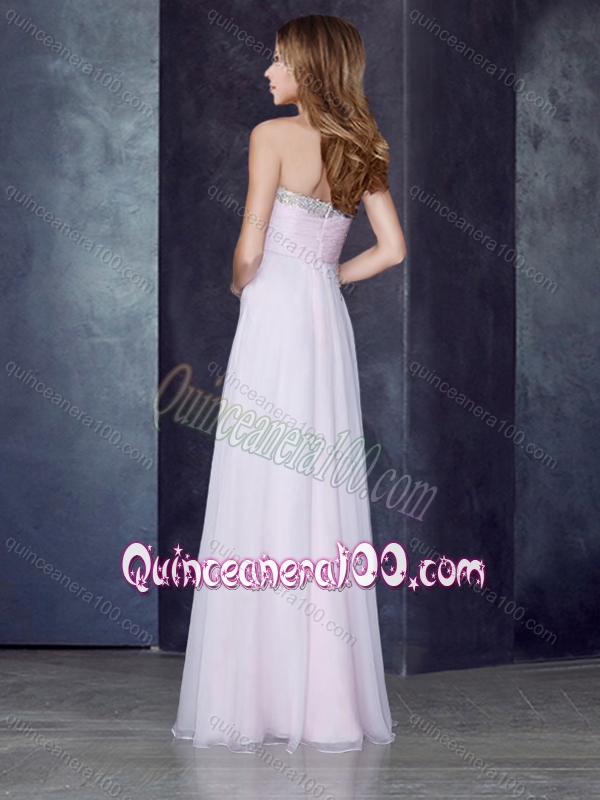 Neckline : SweetheartShown Color : Baby PinkSleeve Length : sleevelessHemline : floor lengthBack Detail : ZipperFabric : ChiffonEmbellishment : Appliques,RuchingOccasion : PromSeason : Spring,Summer,Fall,Winter