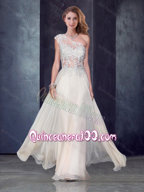 Neckline : One shoulderShown Color : ChampagneSilhouette : EmpireSleeve Length : cap sleevesHemline : floor lengthBack Detail : Side zipperFabric : ChiffonEmbellishment : AppliquesOccasion : PromSeason : Spring,Summer,Fall,Winter