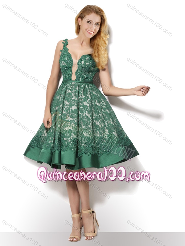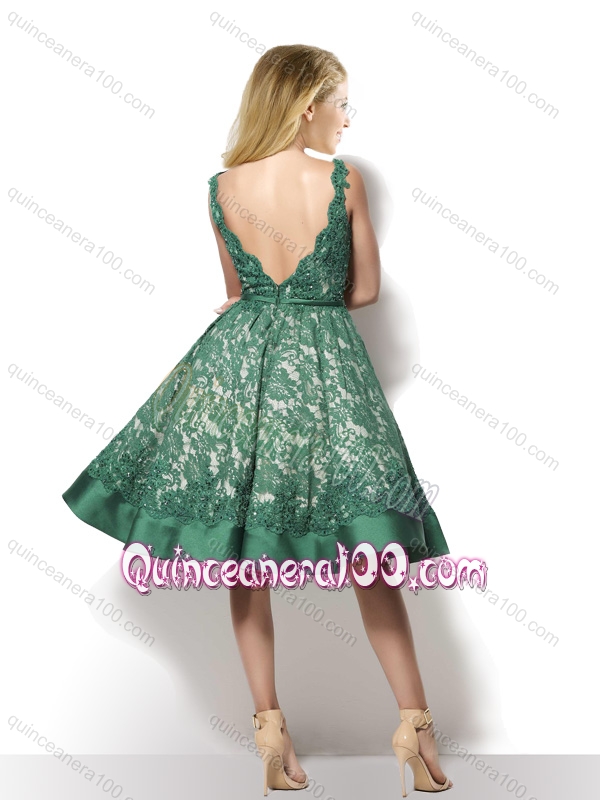 Neckline : V-neckShown Color : Black,GreenSleeve Length : sleevelessHemline : knee lengthBack Detail : BacklessFabric : LaceEmbellishment : LaceOccasion : Prom,PartySeason : Spring,Summer,Fall