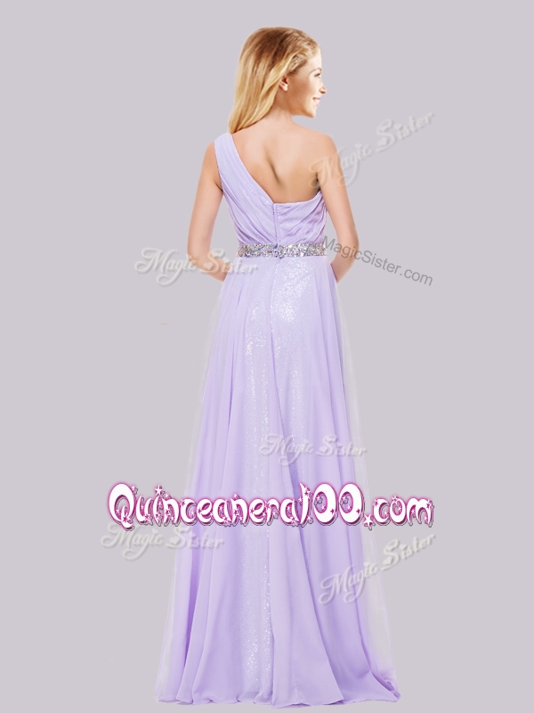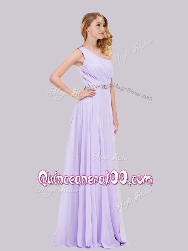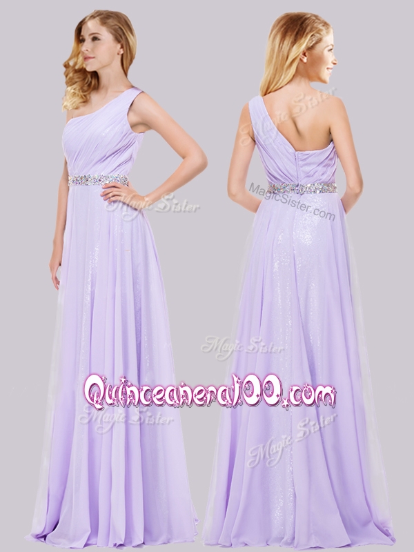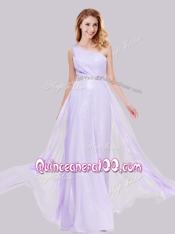 Neckline : One shoulderShown Color : LavenderSleeve Length : sleevelessHemline : floor lengthBack Detail : ZipperFabric : OrganzaEmbellishment : Beading,BeltOccasion : PromSeason : Spring,Summer,Fall,Winter