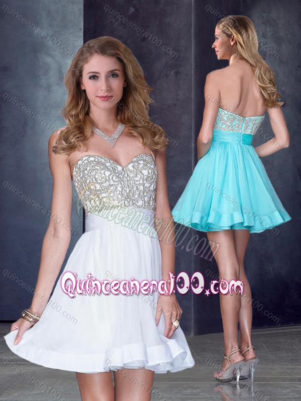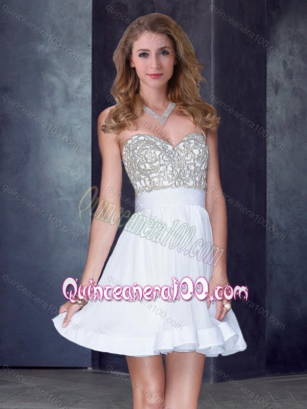 Neckline : SweetheartShown Color : WhiteSleeve Length : sleevelessHemline : mini lengthBack Detail : ZipperFabric : OrganzaEmbellishment : BeadingOccasion : Prom,PartySeason : Spring,Summer,Fall