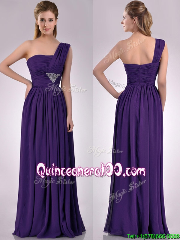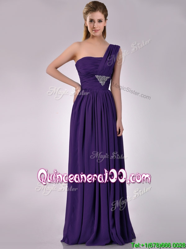 Neckline : One shoulderShown Color : Dark PurpleSilhouette : EmpireSleeve Length : sleevelessHemline : floor lengthBack Detail : ZipperFabric : ChiffonEmbellishment : Beading,RuchingOccasion : PromSeason : Spring,Summer,Fall,Winter