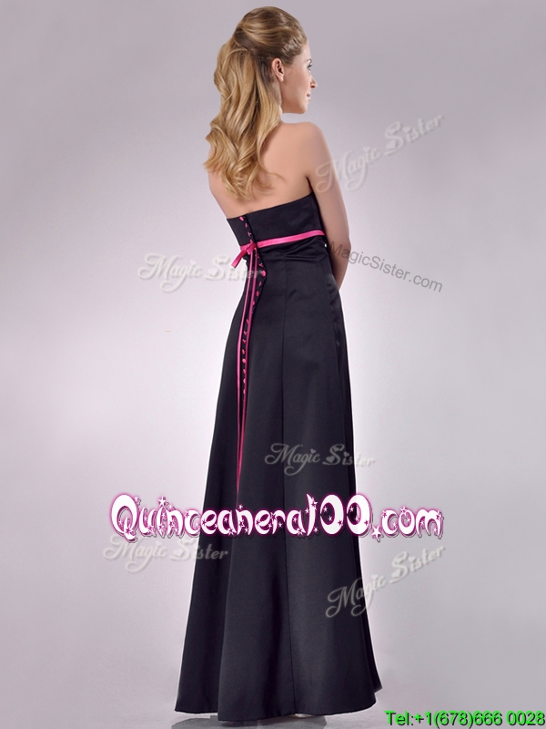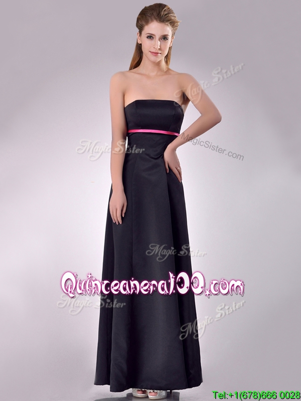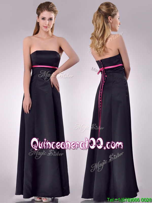 Neckline : StraplessShown Color : BlackSleeve Length : sleevelessHemline : ankle lengthBack Detail : ZipperFabric : SatinEmbellishment : BeltOccasion : PromSeason : Spring,Summer,Fall,Winter