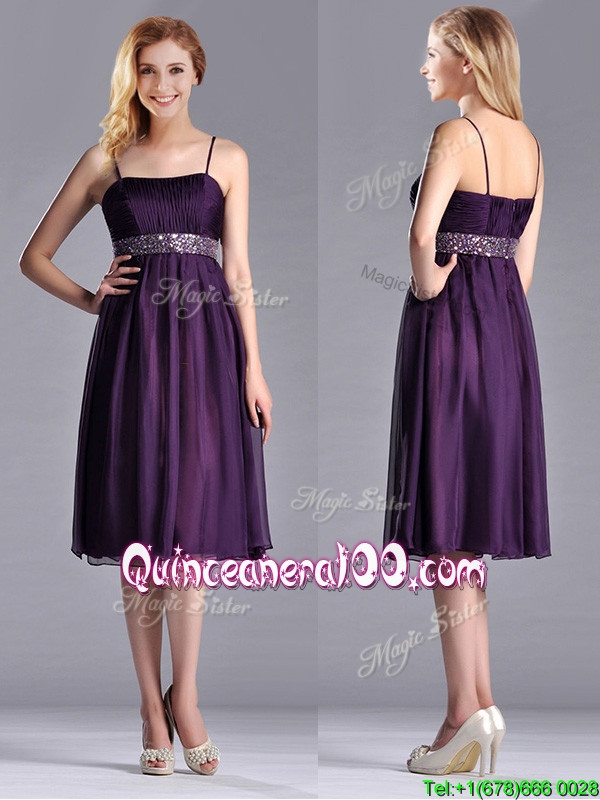 Neckline : Spaghetti strapsShown Color : PurpleSleeve Length : sleevelessHemline : knee lengthBack Detail : ZipperFabric : ChiffonEmbellishment : BeadingOccasion : Prom,PartySeason : Spring,Summer,Fall