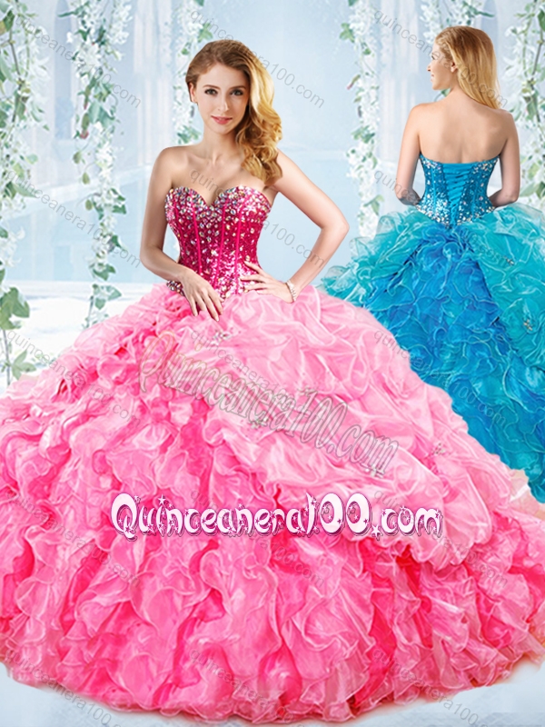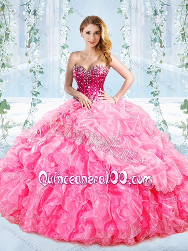Neckline : SweetheartShown Color : Rose PinkSilhouette : Ball GownsSleeve Length : sleevelessHemline : floor lengthBack Detail : Lace upFabric : OrganzaEmbellishment : Beading,RufflesOccasion : Military Ball,Sweet 16,QuinceaneraSeason : Spring,Summer,Fall,Winter
