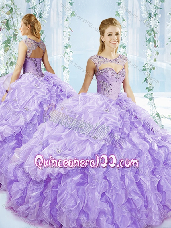 Neckline : SweetheartShown Color : LavenderSilhouette : Ball GownsSleeve Length : sleevelessHemline : floor lengthBack Detail : Lace upFabric : OrganzaEmbellishment : Beading,Ruffles,Pick UpsOccasion : Military Ball,Sweet 16,QuinceaneraSeason : Spring,Summer,Fall,Winter