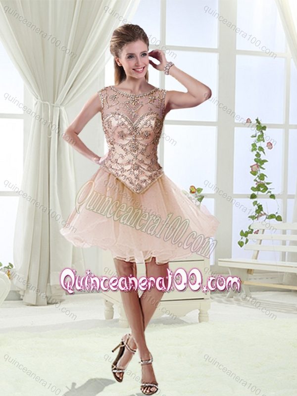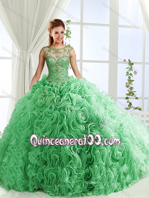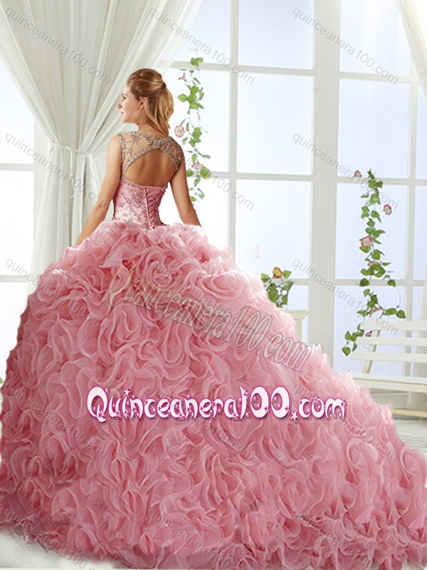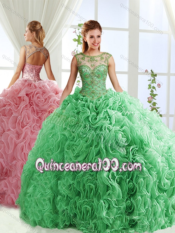 See Through Beaded Scoop Detachable Quinceanera Dresses with Rolling Flower