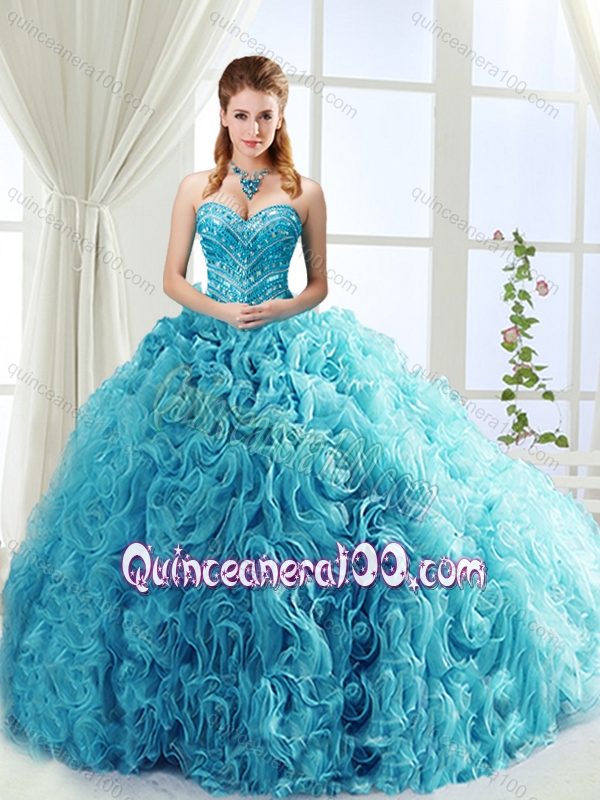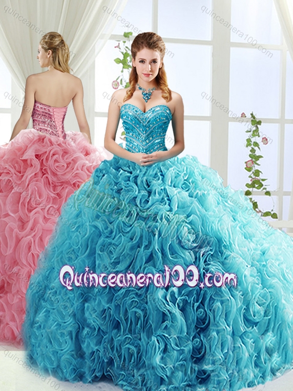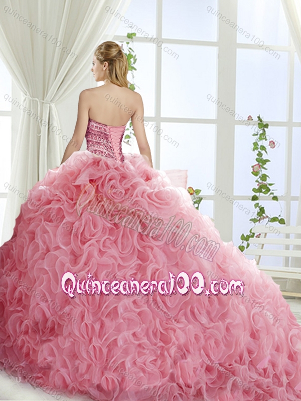 Artistic Rolling Flowers Brush Train Detachable Quinceanera Gowns with Beading