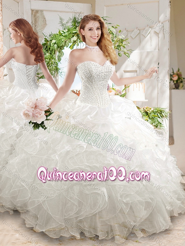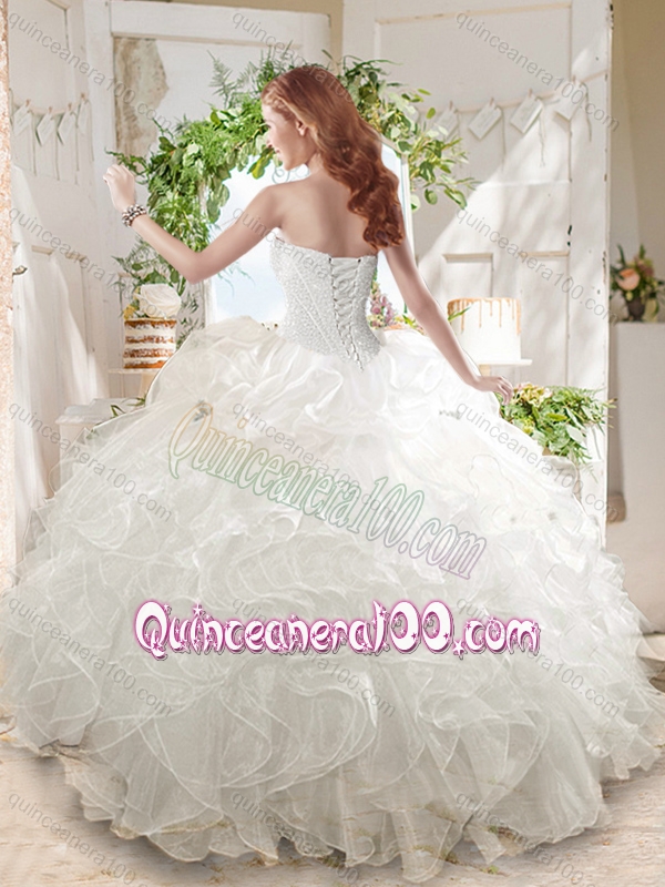 Simple Ball Gown Sweetheart White Quinceanera Dress with Beading and Ruffled