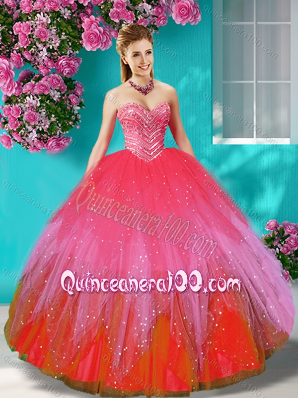 Top Popular Beaded Rainbow Quinceanera Dress with Really Puffy