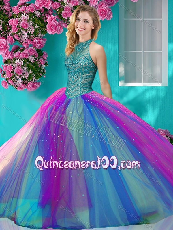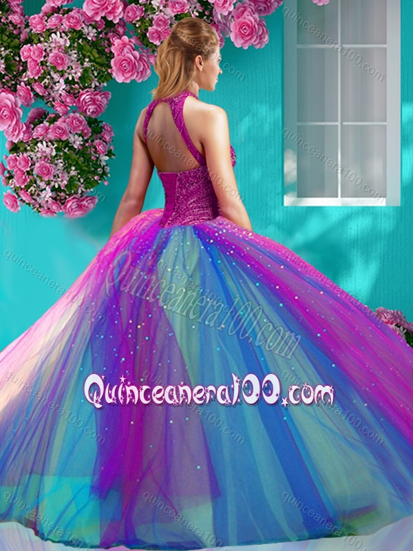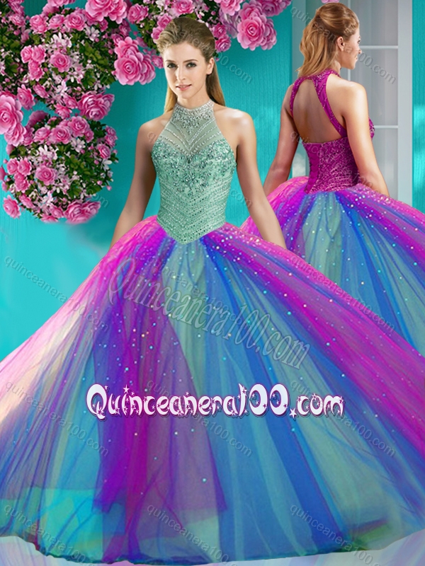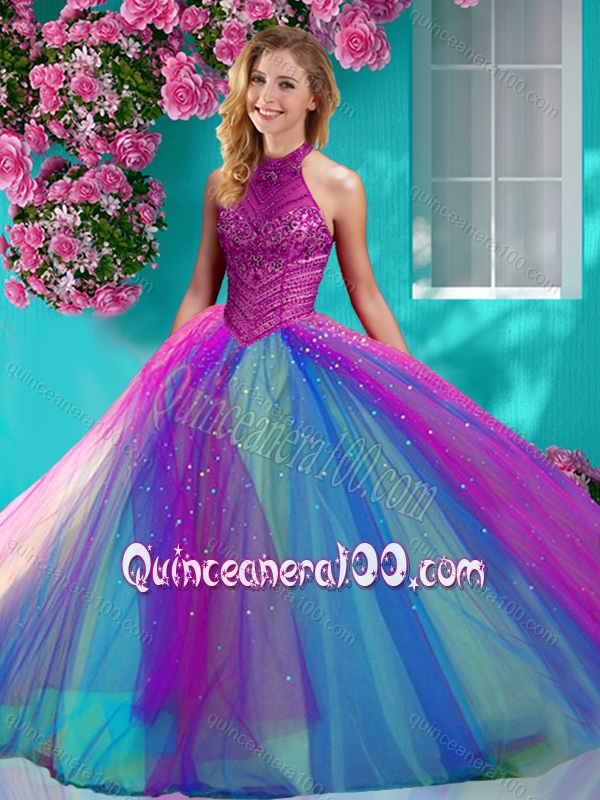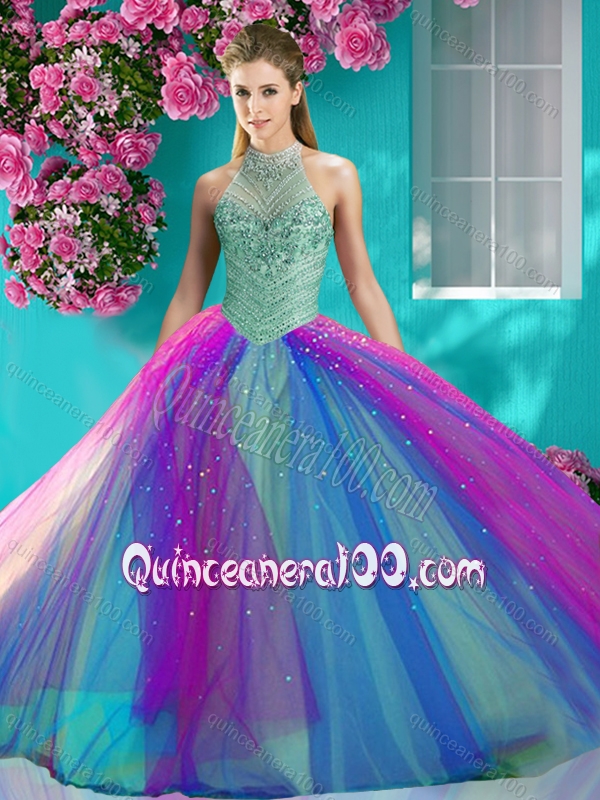 Exclusive Halter Top Really Puffy Quinceanera Dress with Beading and Appliques