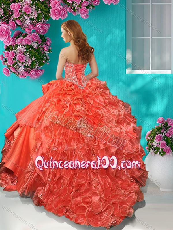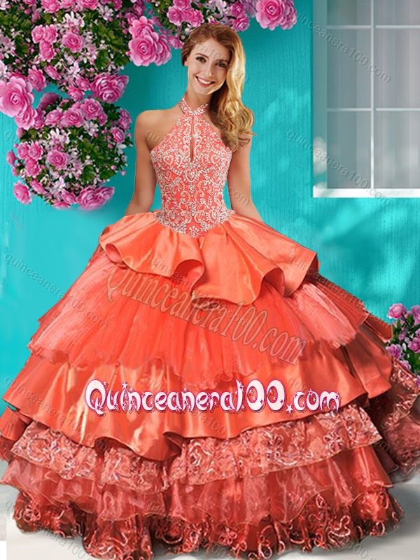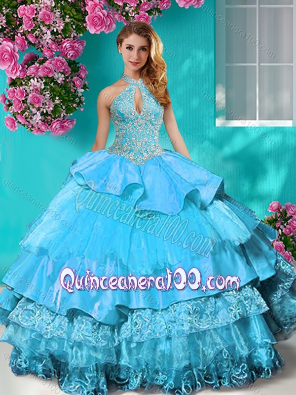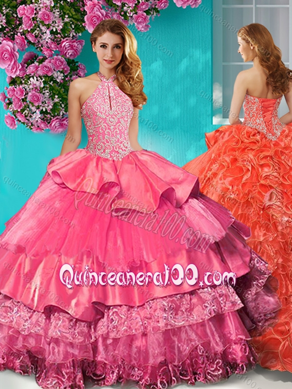 Top Halter Top Brush Train Quinceanera Dress with Beading and Ruffles Layers