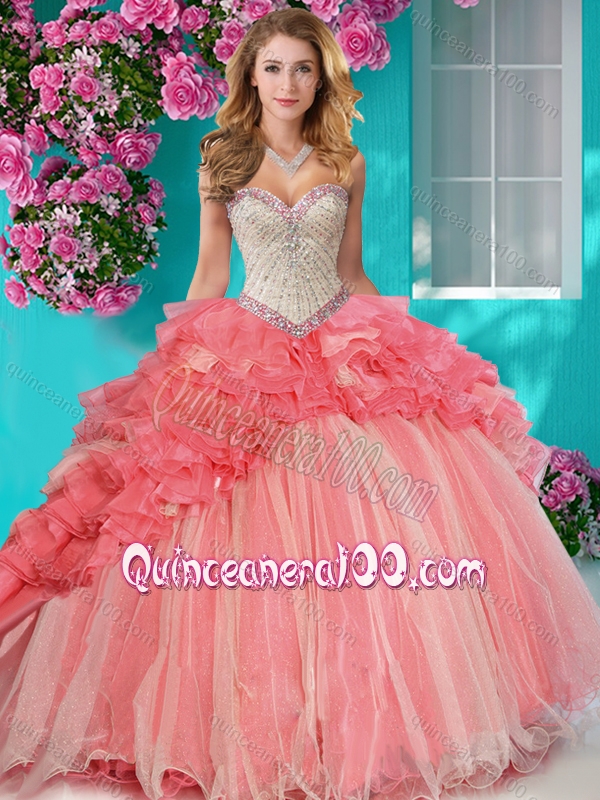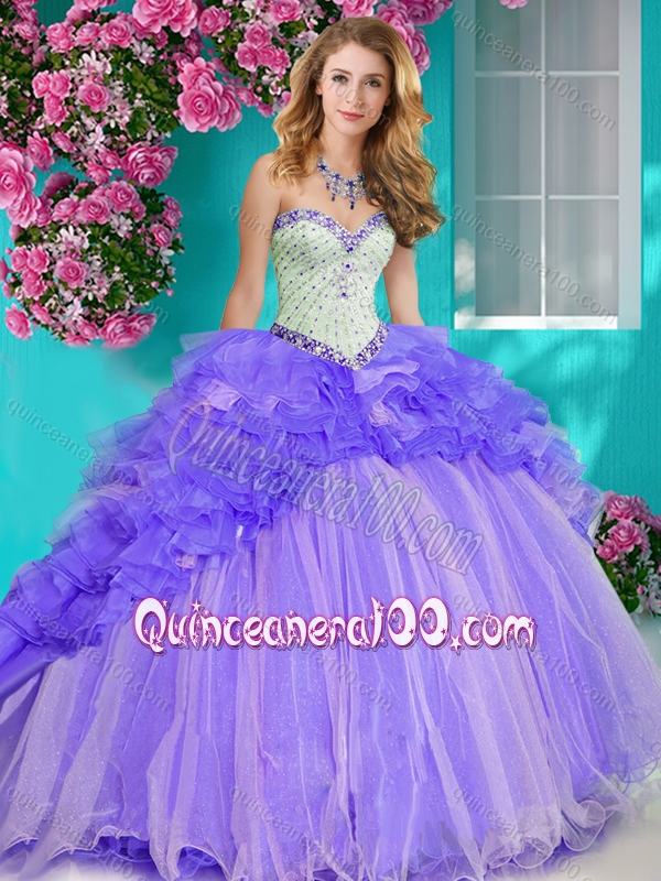 Neckline : SweetheartShown Color : Baby BlueSilhouette : Ball GownsSleeve Length : sleevelessHemline : with trainBack Detail : Lace upFabric : OrganzaEmbellishment : Beading,RufflesOccasion : Military Ball,Sweet 16,QuinceaneraSeason : Spring,Summer,Fall,Winter