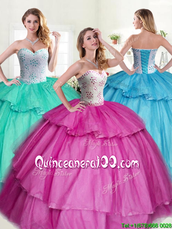 Neckline : SweetheartShown Color : FuchsiaSilhouette : Ball GownsSleeve Length : sleevelessHemline : floor lengthBack Detail : Lace upFabric : TulleEmbellishment : Beading,Ruffled LayersOccasion : Military Ball,Sweet 16,QuinceaneraSeason : Spring,Summer,Fall,Winter