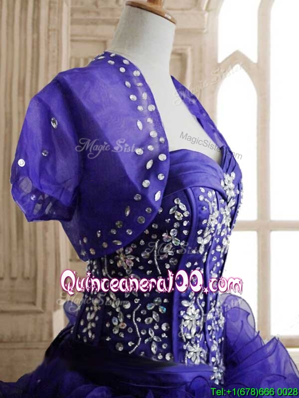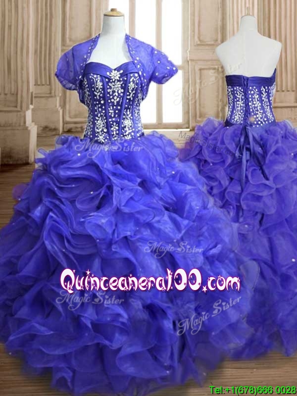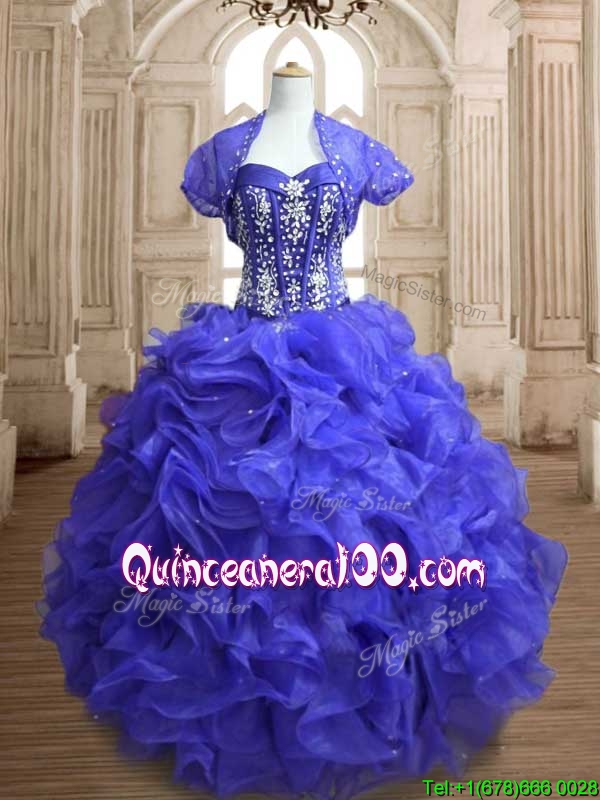 Custom Made Unique Royal Blue Sweet 16 Dress with Beading and Ruffles
