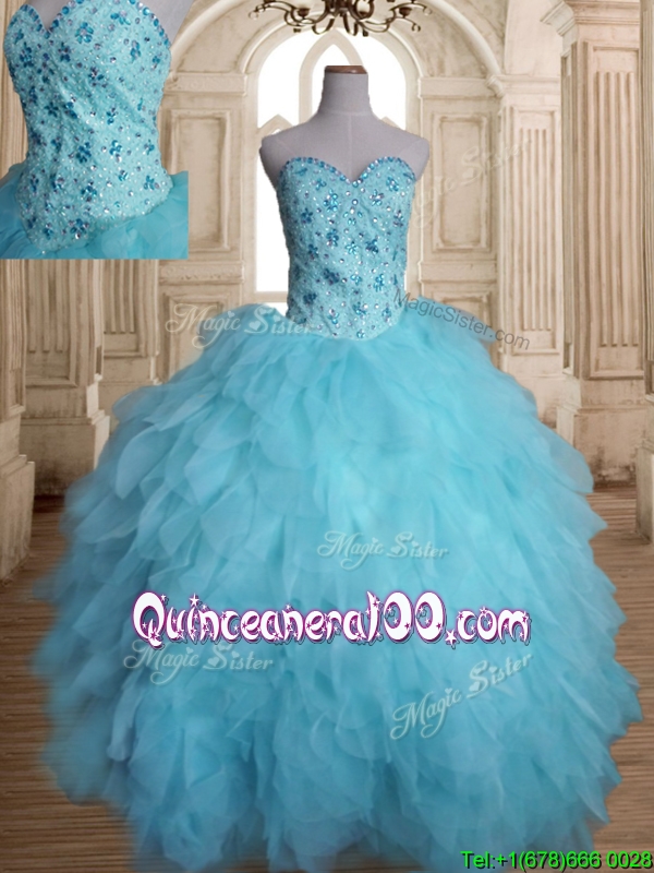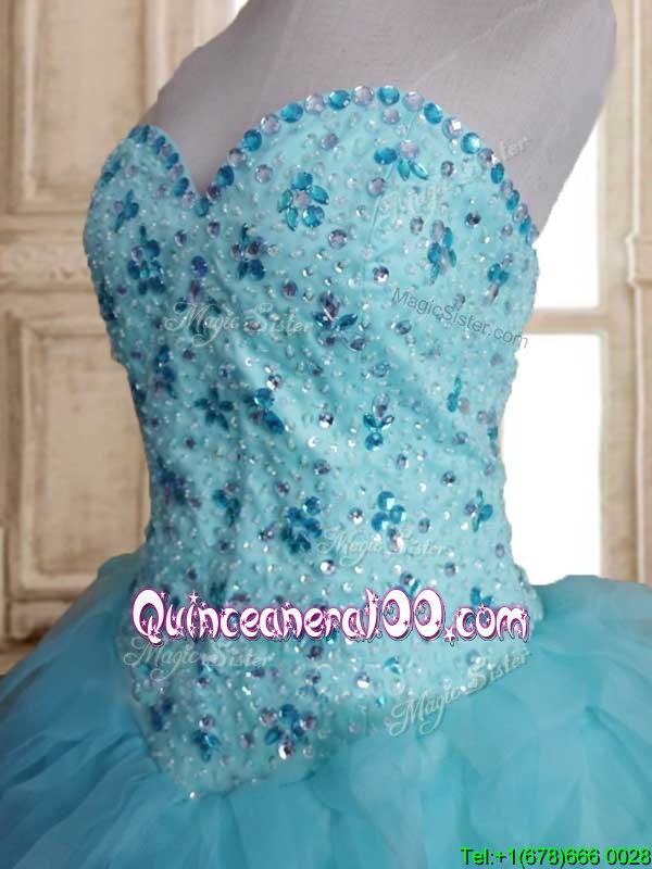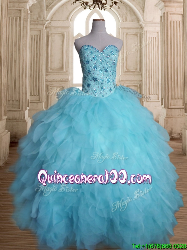 Latest Beaded and Ruffled Tulle Quinceanera Dress in Baby Blue
