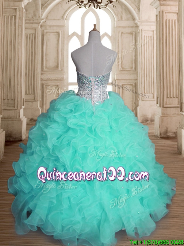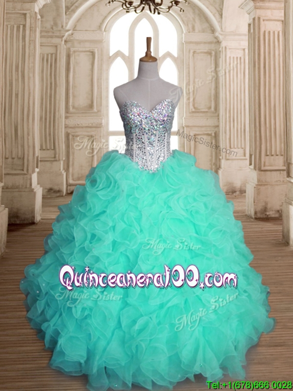 Pretty Apple Green Sweet 16 Dress with Beading and Ruffles for Spring