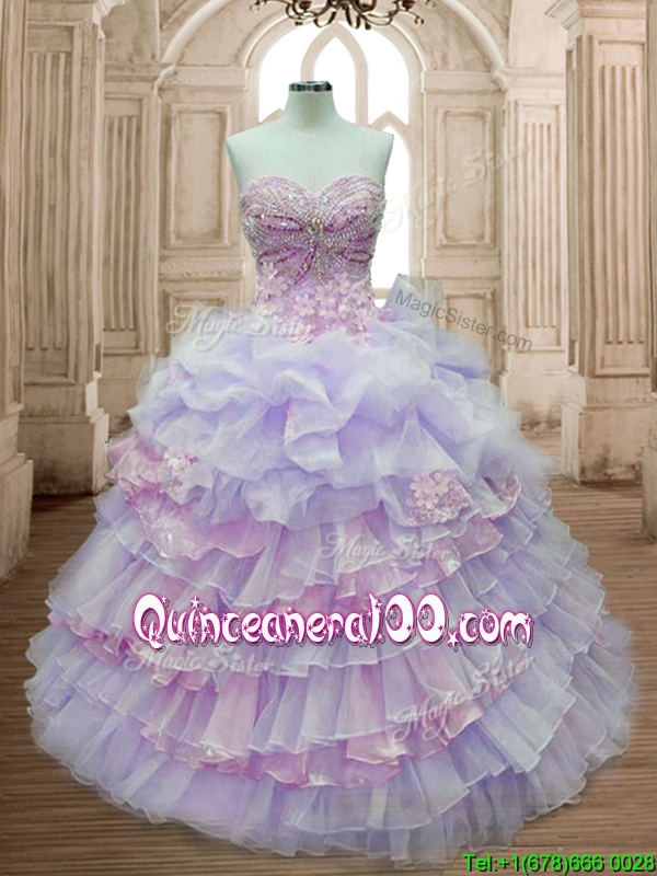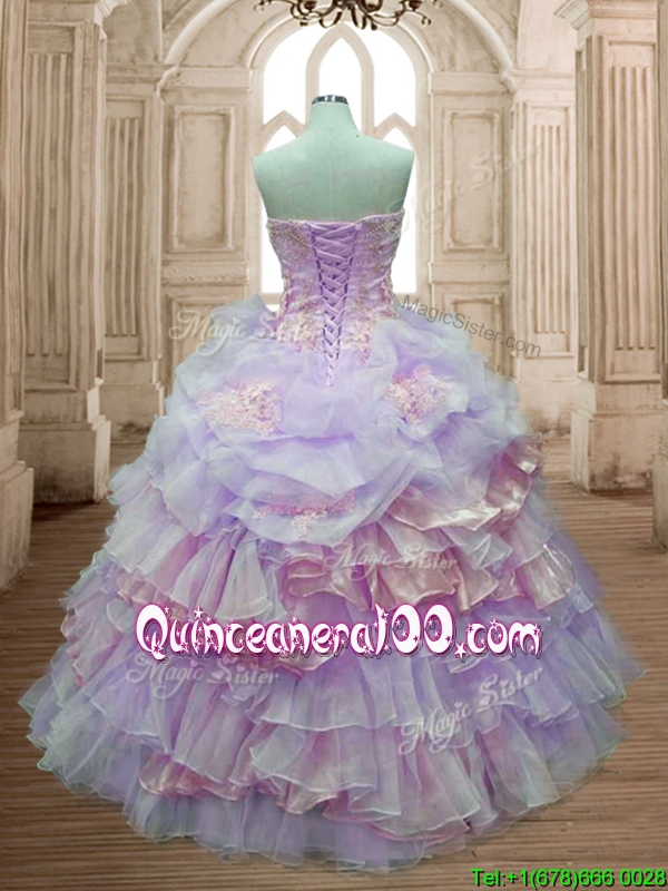 Neckline : SweetheartShown Color : Multi-colorSilhouette : Ball GownsSleeve Length : sleevelessHemline : floor lengthBack Detail : Lace upFabric : OrganzaEmbellishment : Beading,Appliques,Ruffled Layers,Pick UpsOccasion : Military Ball,Sweet 16,QuinceaneraSeason : Spring,Summer,Fall,Winter