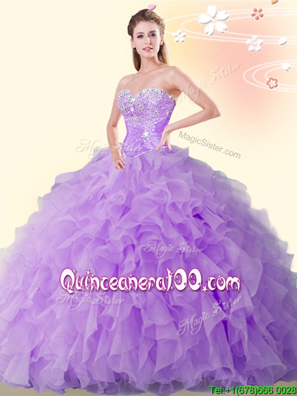 2017 Perfect Eggplant Purple Organza Quinceanera Dress with Beading and Ruffles