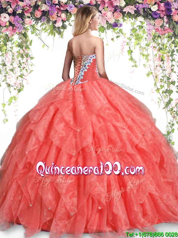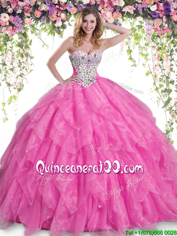 2017 Popular Hot Pink Big Puffy Quinceanera Dress with Beading and Ruffles