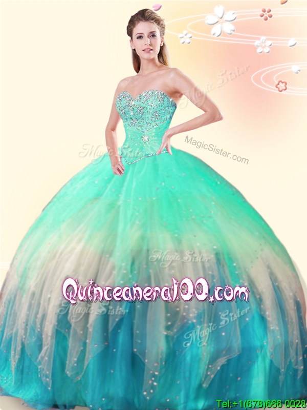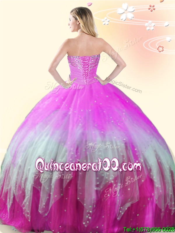 2017 Perfect Beaded Rainbow Tulle Quinceanera Dress in Floor Length
