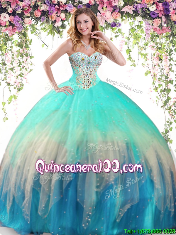 Neckline : SweetheartShown Color : Multi-colorSilhouette : Ball GownsSleeve Length : sleevelessHemline : floor lengthBack Detail : Lace upFabric : TulleEmbellishment : BeadingOccasion : Military Ball,Sweet 16,QuinceaneraSeason : Spring,Summer,Fall,Winter