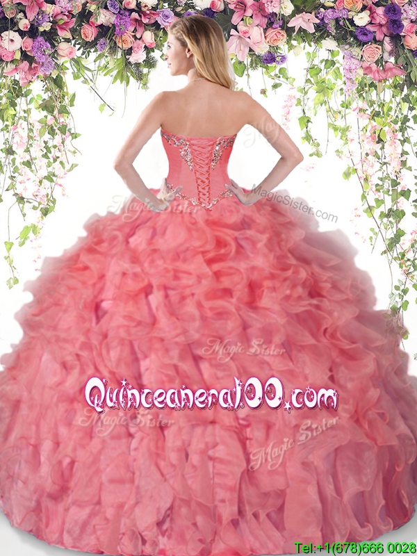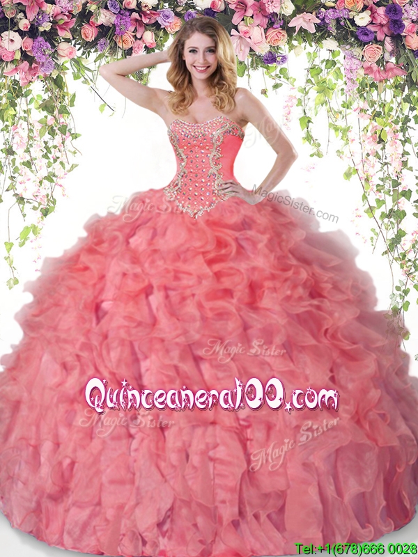 2017 Unique Coral Red Quinceanera Dress with Beading and Ruffles for Summer