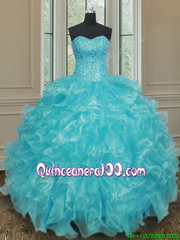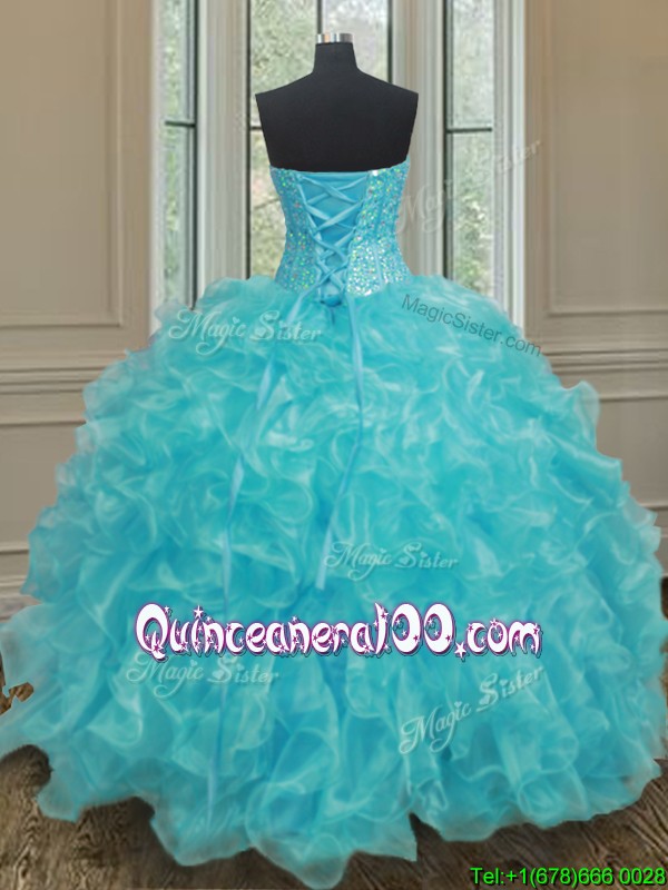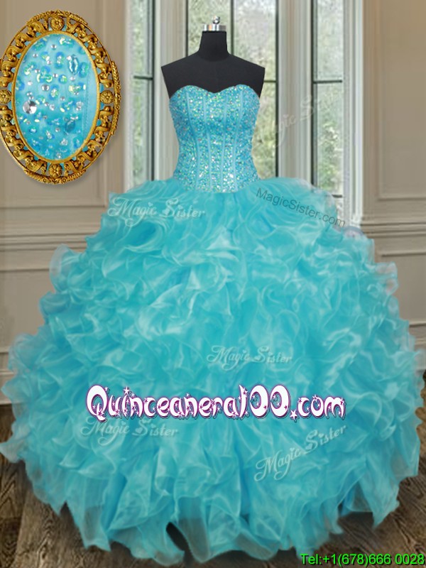 Fashionable Aqua Blue Organza Quinceanera Gown with Beading and Ruffles
