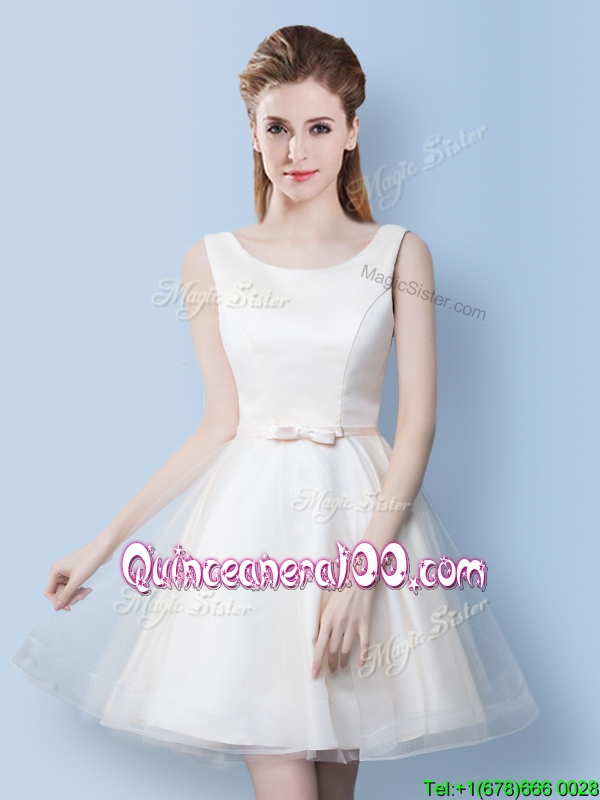 Neckline : ScoopShown Color : WhiteSleeve Length : sleevelessHemline : mini lengthBack Detail : Lace upFabric : TulleEmbellishment : BowknotOccasion : Prom,PartySeason : Spring,Summer,Fall