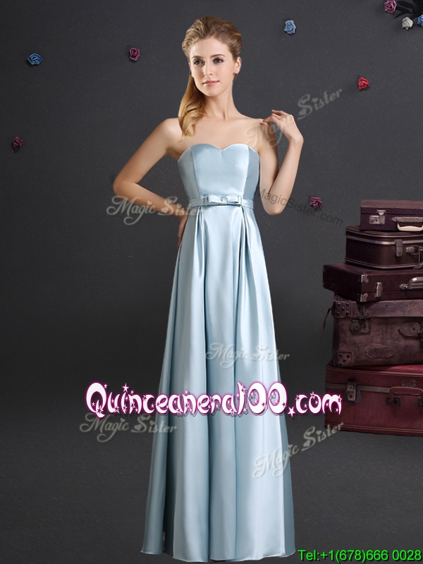 Neckline : SquareShown Color : Light BlueSleeve Length : sleevelessHemline : floor lengthBack Detail : ZipperFabric : Elastic Woven SatinEmbellishment : BowknotOccasion : Prom,PartySeason : Spring,Summer,Fall,Winter