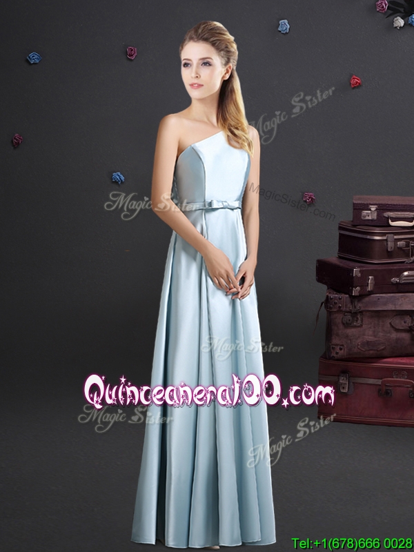 Neckline : One shoulderShown Color : Light BlueSleeve Length : sleevelessHemline : floor lengthBack Detail : ZipperFabric : Elastic Woven SatinEmbellishment : BowknotOccasion : Prom,PartySeason : Spring,Summer,Fall,Winter