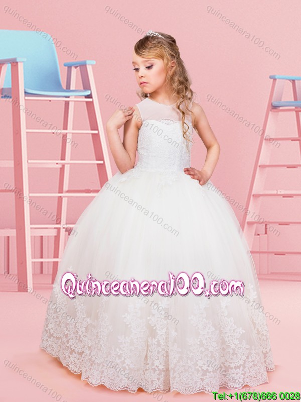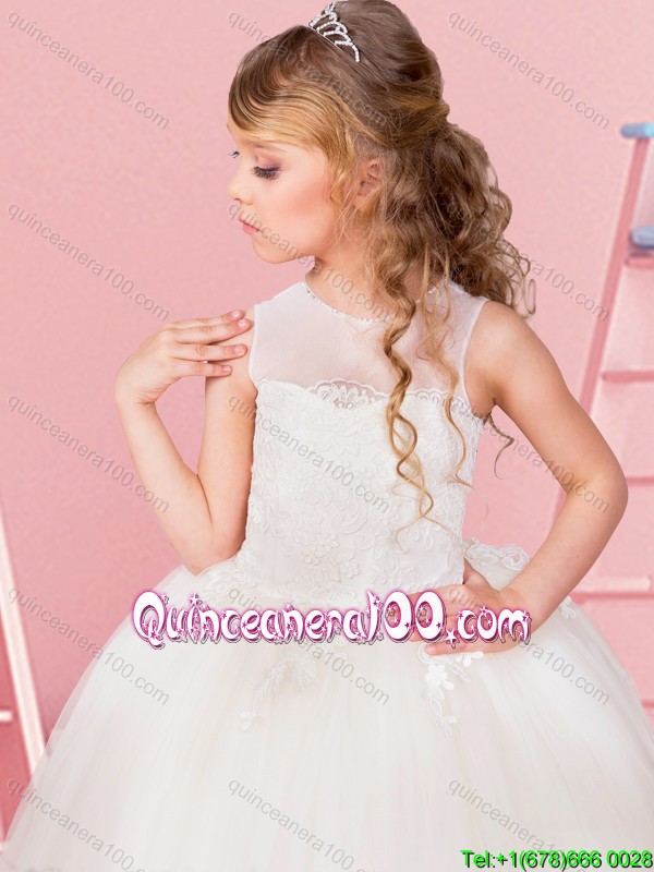 Neckline : ScoopShown Color : WhiteSilhouette : Ball GownsSleeve Length : sleevelessHemline : floor lengthBack Detail : Lace upFabric : TulleEmbellishment : LaceOccasion : Quinceanera,Wedding PartySeason : Spring,Summer,Fall,Winter
