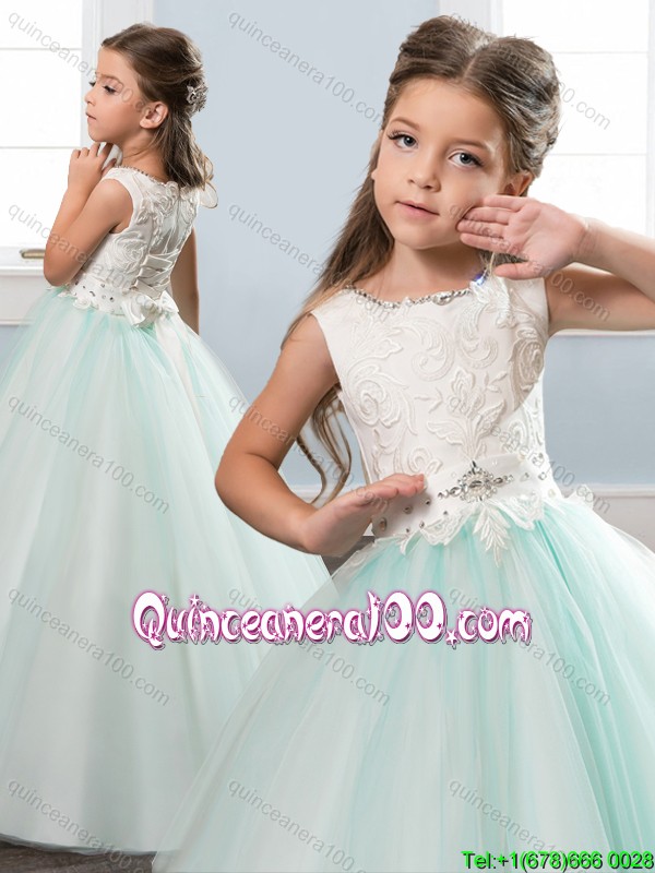 Neckline : ScoopShown Color : Apple GreenSilhouette : Ball GownsSleeve Length : sleevelessHemline : floor lengthBack Detail : ZipperFabric : TulleEmbellishment : Beading,Lace,BowknotOccasion : Quinceanera,Wedding PartySeason : Spring,Summer,Fall,Winter