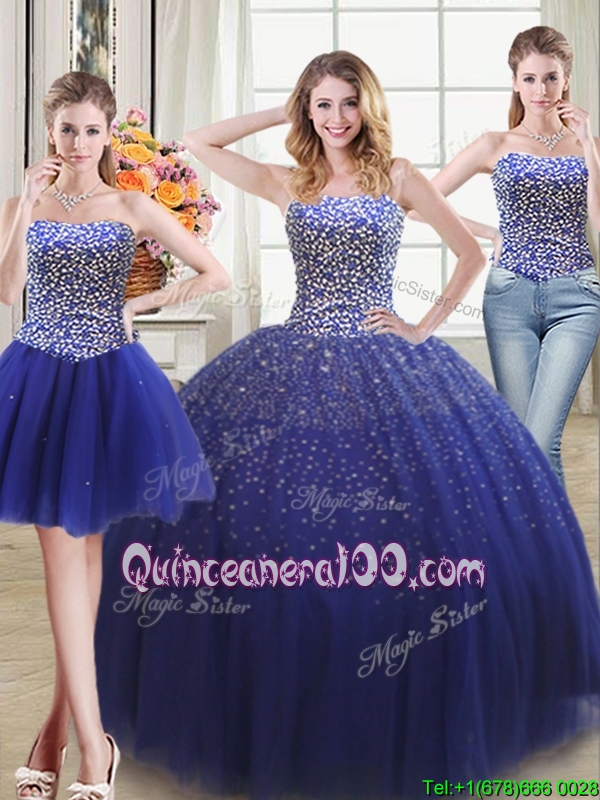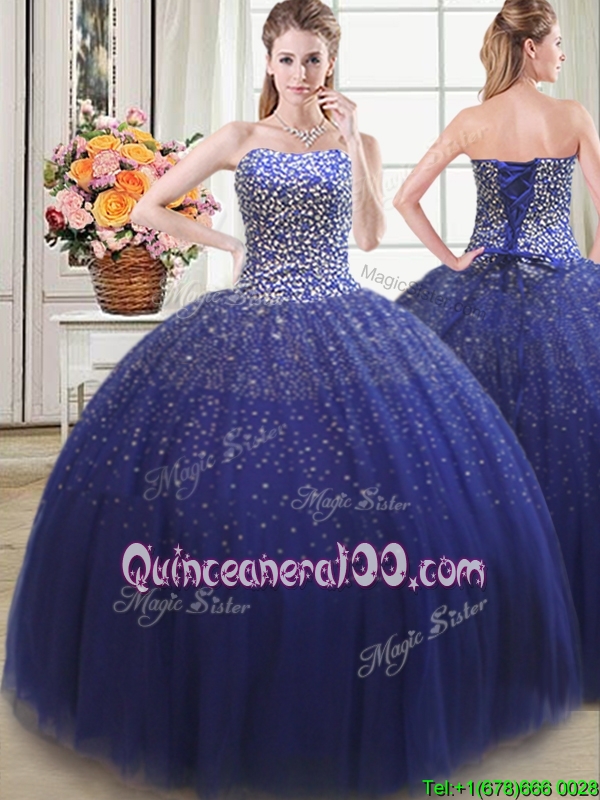 Neckline : SweetheartShown Color : Royal BlueSilhouette : Ball GownsSleeve Length : sleevelessHemline : floor lengthBack Detail : Lace upFabric : TulleEmbellishment : BeadingOccasion : Military Ball,Sweet 16,QuinceaneraSeason : Spring,Summer,Fall,Winter