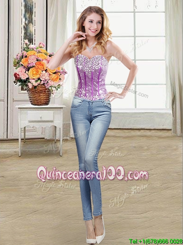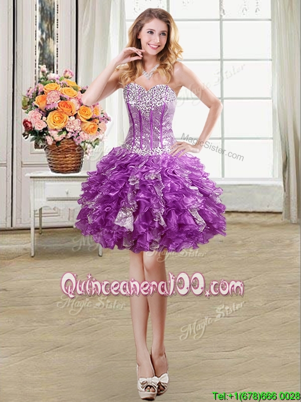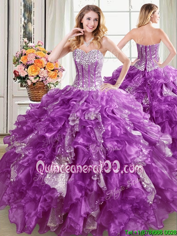 Cute Visible Boning Organza and Sequins Ruffled Detachable Quinceanera Dress in Purple