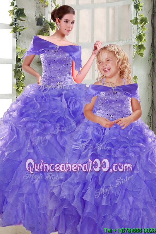 Neckline : StraplessShown Color : LavenderSilhouette : Ball GownsSleeve Length : sleevelessHemline : floor lengthBack Detail : Lace upFabric : OrganzaEmbellishment : Beading,RufflesOccasion : Military Ball,Sweet 16,QuinceaneraSeason : Spring,Summer,Fall,Winter