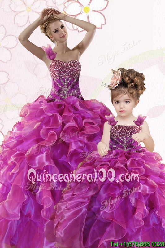 Admirable Sleeveless Organza Floor Length Lace Up Quinceanera Gowns inFuchsia forSpring and Summer and Fall and Winter withBeading and Ruffles