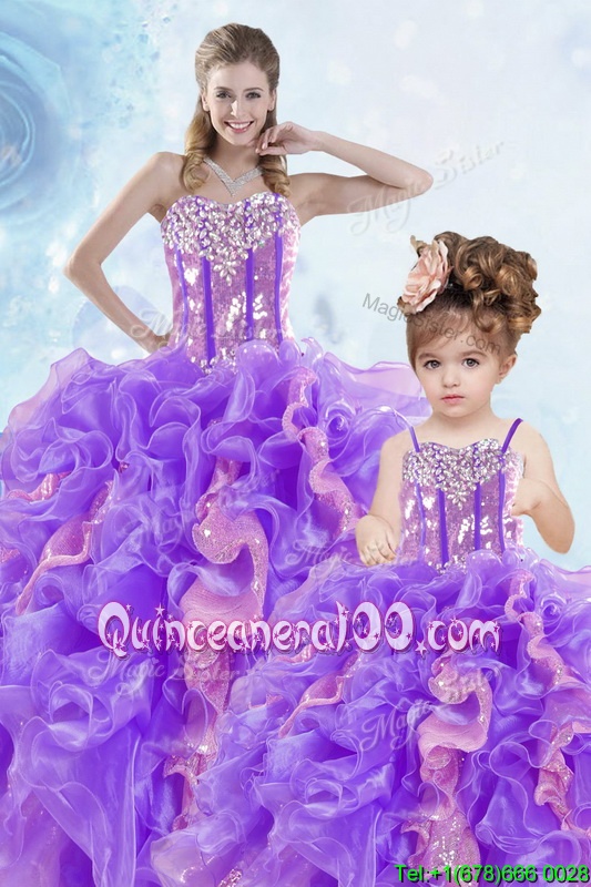 Custom Designed Multi-color Ball Gowns Beading and Ruffles and Sequins Vestidos de Quinceanera Lace Up Organza Sleeveless Floor Length