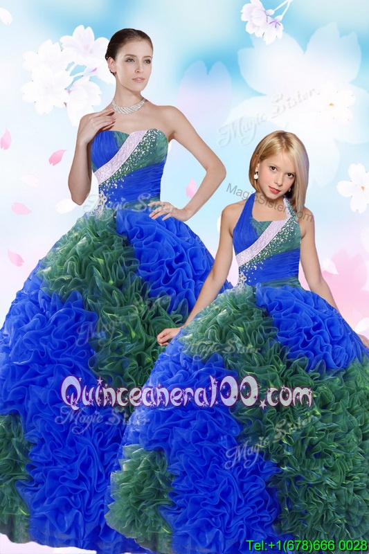 Glamorous Sequins Pick Ups Floor Length Ball Gowns Sleeveless Multi-color Quince Ball Gowns Lace Up