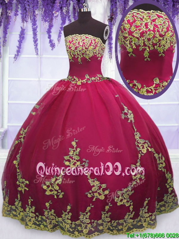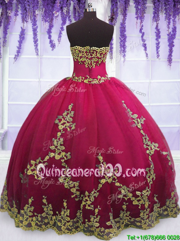 Modern Fuchsia Zipper Quinceanera Gowns Appliques Sleeveless Floor Length